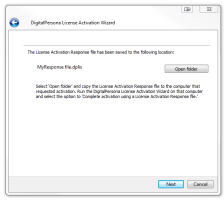 3. Enter the path to, or Browse to, the location of the License Activation Response file (specified above). Click Next.