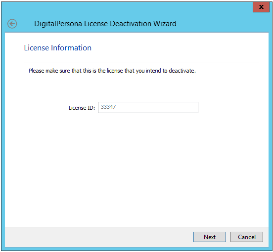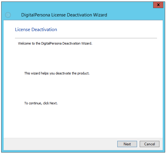 3. The DigitalPersona License Deactivation Wizard will launch. Click Next.