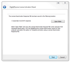 You can leave this wizard open until you have the License Deactivation Response file, or rerun the wizard later.