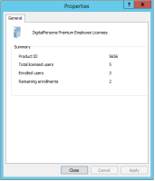 1. To display a summary of license information for all DigitalPersona licenses installed on this machine, right click anywhere on the Licensed product option line and select Properties.