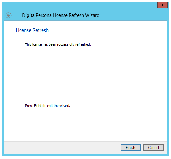 5. Once the license has been successfully refreshed, click Finish to close the wizard.