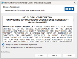 You must have local administrative privileges to modify or uninstall the HID Authentication Device Client.