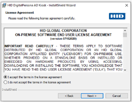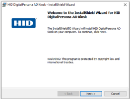 Launch the installer from the DigitalPersona AD Kiosk folder of the product package.