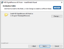 On the next page, you can specify the folder that DigitalPersona AD Kiosk will be installed in. If you want to install to the default location, click Next.