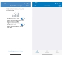 On the Diagnostic and Usage page, accept the defaults or tap an option to deselect it.