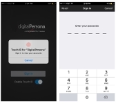 The DigitalPersona app is currently available from the Apple® Store and Google® Play.