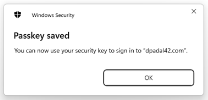 Depending on your passkey and any authentication settings, you may be prompted to provide your PIN and to touch your Security Key.