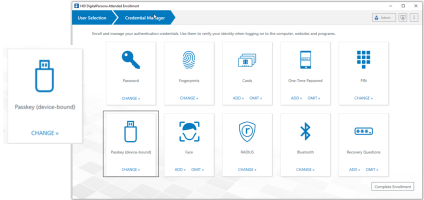 It also can be used for authentication to the DigitalPersona Identity Server, providing access to the DigitalPersona Administration Console, and HID DigitalPersona Enrollment, as well as for verifying your identity within HID DigitalPersona Enrollment when enrolling or managing credentials.