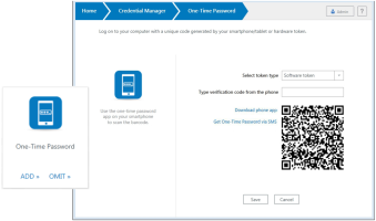 On the Credential Manager, One-Time Password page, you can download an OTP authentication app, and then enroll the OTP credential for use with the authenticator app and OTP Push Notification (if configured).