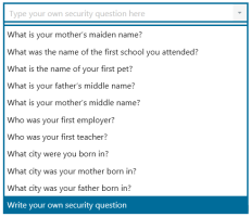 Administrators can configure the list of security questions displayed or create custom questions through the Recovery Questions GPO setting.