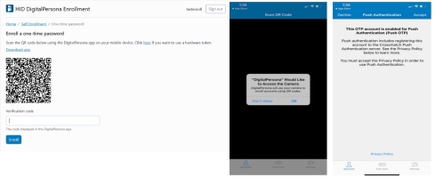 Enrollment of an OTP credential to be used with an authenticator app will also automatically include the ability to make use of OTP Push Notification (when using the DigitalPersona app only), after the following steps have been taken: