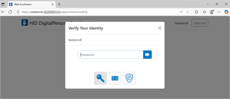 The first time, within a browser session, that a user clicks a credential tile, they will be asked to verify their identity by submitting a previously enrolled credential. This may be their password or any other DigitalPersona credential that has been enrolled for their account.