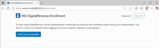 After authentication through the DigitalPersona Identity Server, click Enroll your credentials.
