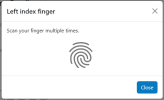 Successful scans will show a temporary blue background on the fingerprint icon.