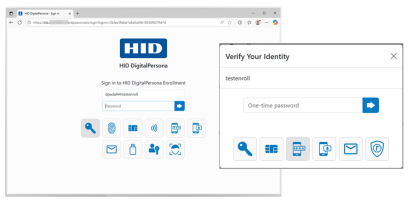 The OTP credential can be used for authentication to the DigitalPersona Identity Server, for providing access to the HID DigitalPersona Administration Console and HID DigitalPersona Enrollment, as well as for verifying your identity when enrolling or managing credentials.