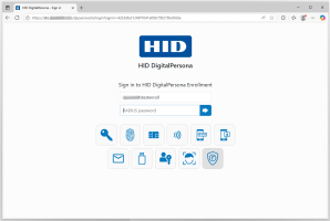 Navigating to the URL will first display the DigitalPersona Identity Server page for authentication, and upon successful authentication will then open the HID DigitalPersona Enrollment application.