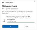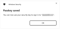 Depending on your passkey and any authentication settings, you may be prompted to provide your PIN and to touch your Security Key.