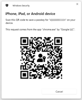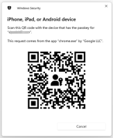 On the dialog that displays, scan the displayed QR code using the camera on the mobile device that has your enrolled passkey on it.