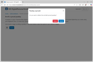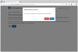 In the confirmation dialog, click Delete. Your current passkey will be deleted immediately.
