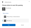 If you are prompted to select where to save the passkey, select the option to use a Security key.