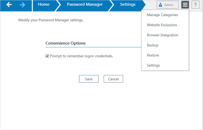 On the Password Manager Settings page, you can personalize your experience of Password Manager.