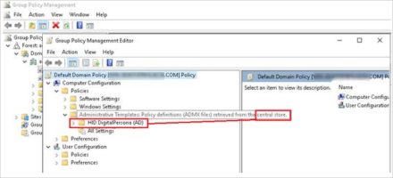 DigitalPersona LDS Server and its associated clients use GPMC/GPOE extensions, installed under the Software Settings and Administrative Templates nodes, to link product policies and settings to Active Directory containers.