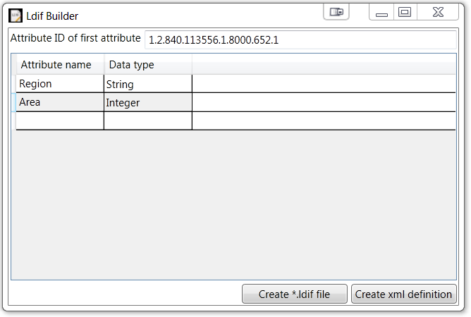 The DPLdifUtilities.Builder tool provides a GUI-based way to generate the XML for adding new attributes to Attended Enrollment Custom pages, and for creating the LDAP Data Interchange Format (.ldif) file that can be used to add the attributes to the DigitalPersona LDS database.