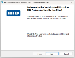 Launch the installer from the HID Authentication Device Client folder of the product package: