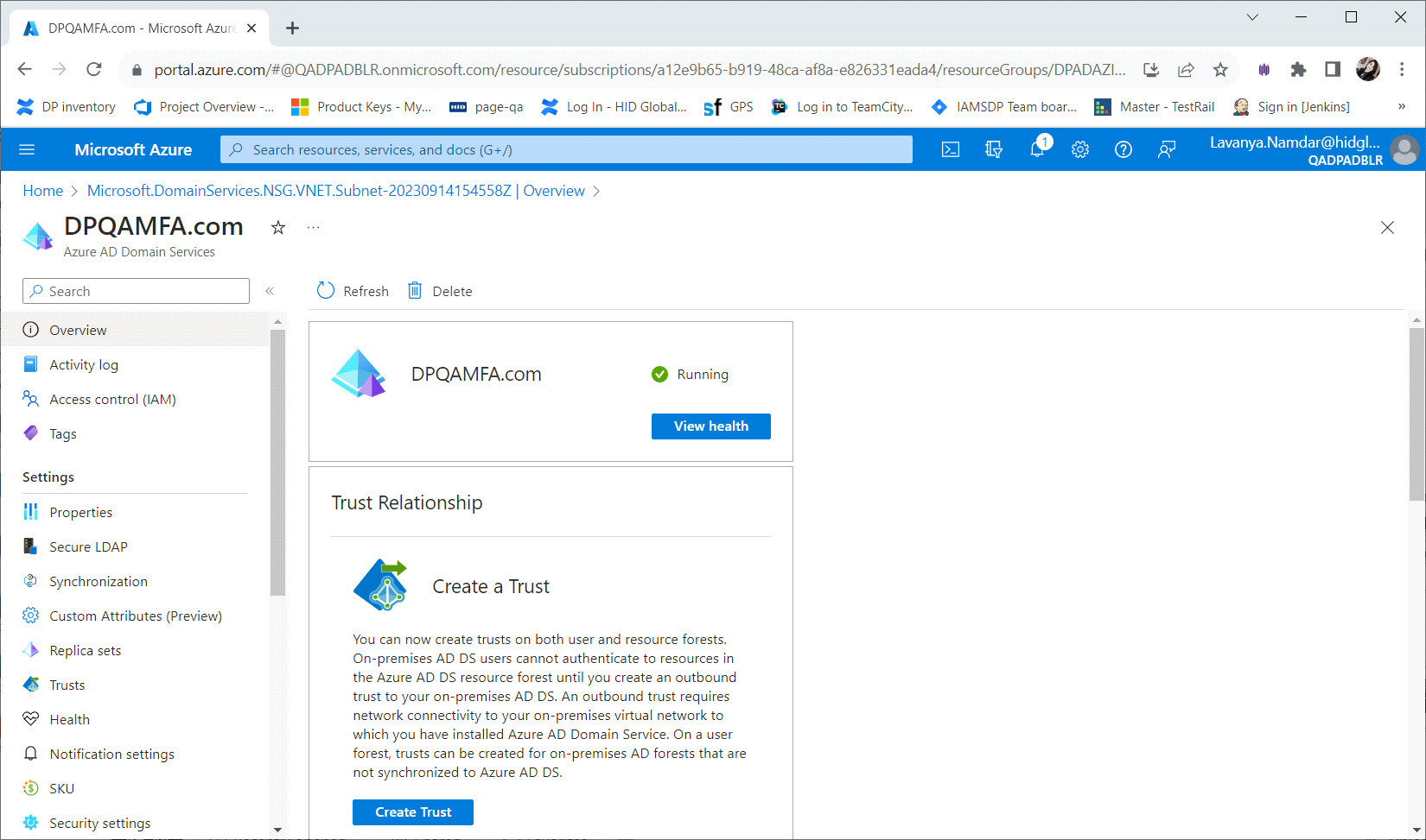 The first step for deploying DigitalPersona product on Microsoft® Azure® AD is to create and configure Azure AD Domain Services (Azure AD DS).