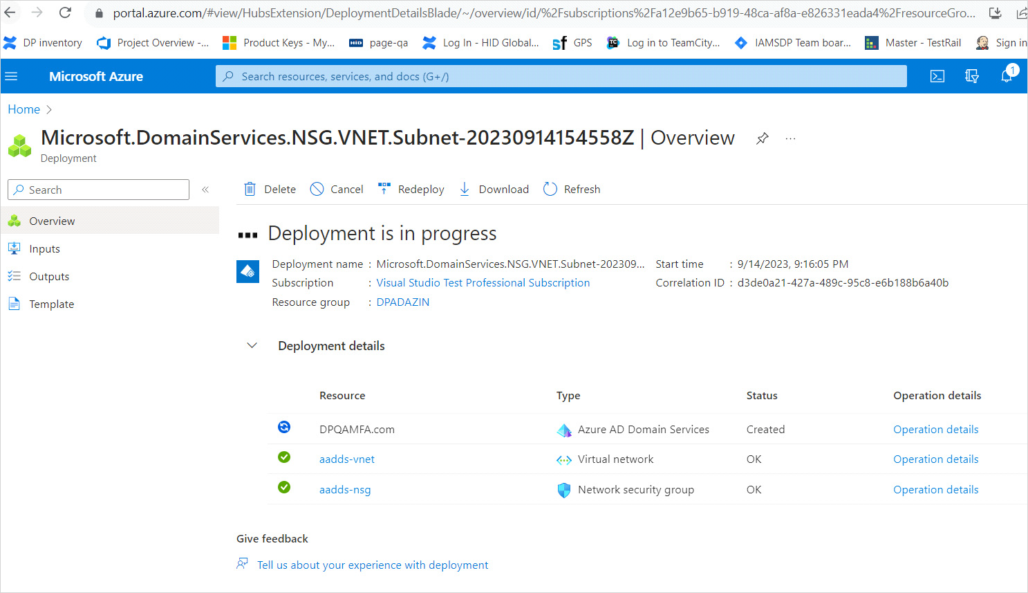 The process of provisioning your managed domain can take up to an hour. A notification is displayed in the portal that shows the progress of your Azure AD DS deployment.