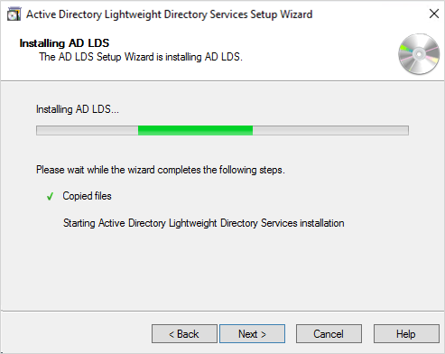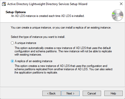 Once the LDS feature has been installed, you will use the Active Directory Lightweight Directory Services Setup Wizard to install a new AD LDS instance on this machine that is a replica of the existing instance created during the installation of your first DigitalPersona LDS Server.