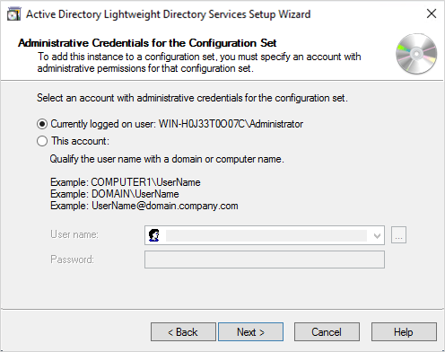 Specify the user or group that will have administrative privileges for this AD LDS instance.