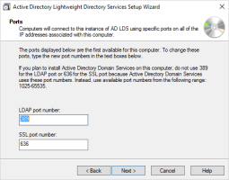 Enter the LDAP and SSL port numbers for this instance. The default port numbers for this computer are shown. In most cases, the default port numbers should be accepted.