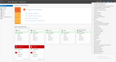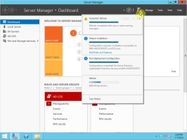 Finally, closing the Add Roles and Features page will leave the Server Manager Dashboard on the screen. There will be an error flag in the upper right of the page until the AD LDS replica setup has completed post deployment configuration.