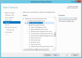 On the Select features page, in addition to the features selected by default, ensure that the following features are selected and then click Next: