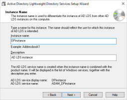 The following page simply explains how to create an AD LDS instance, by using the AD LDS Setup Wizard, and how to remove the AD LDS role through the Windows Control Panel. Click Next.