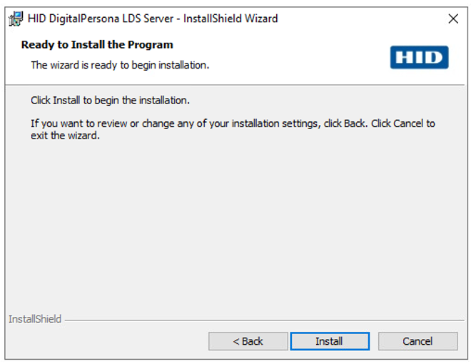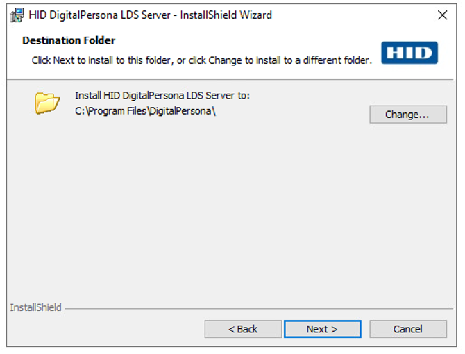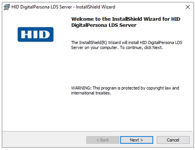 Launch the DigitalPersona LDS Server - InstallShield Wizard by running Setup.exe, located in the ..\Server\DigitalPersona LDS Server folder in the product package.