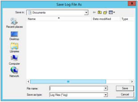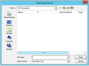 5. In the Save Log File As window, select a location where you want DigitalPersona LDS log files saved to, and enter a name for the file.