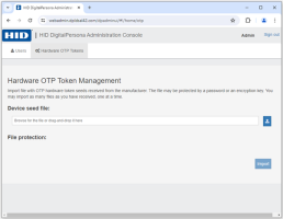 To use hardware-based OTP tokens, you must import seed files provided by the hardware vendor to the DigitalPersona Server.