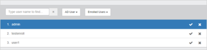 Use the Search field and Users drop down menu to search for and filter enrolled users by their status (that is, all Enrolled Users or only users whose accounts have been locked (Locked Users)).