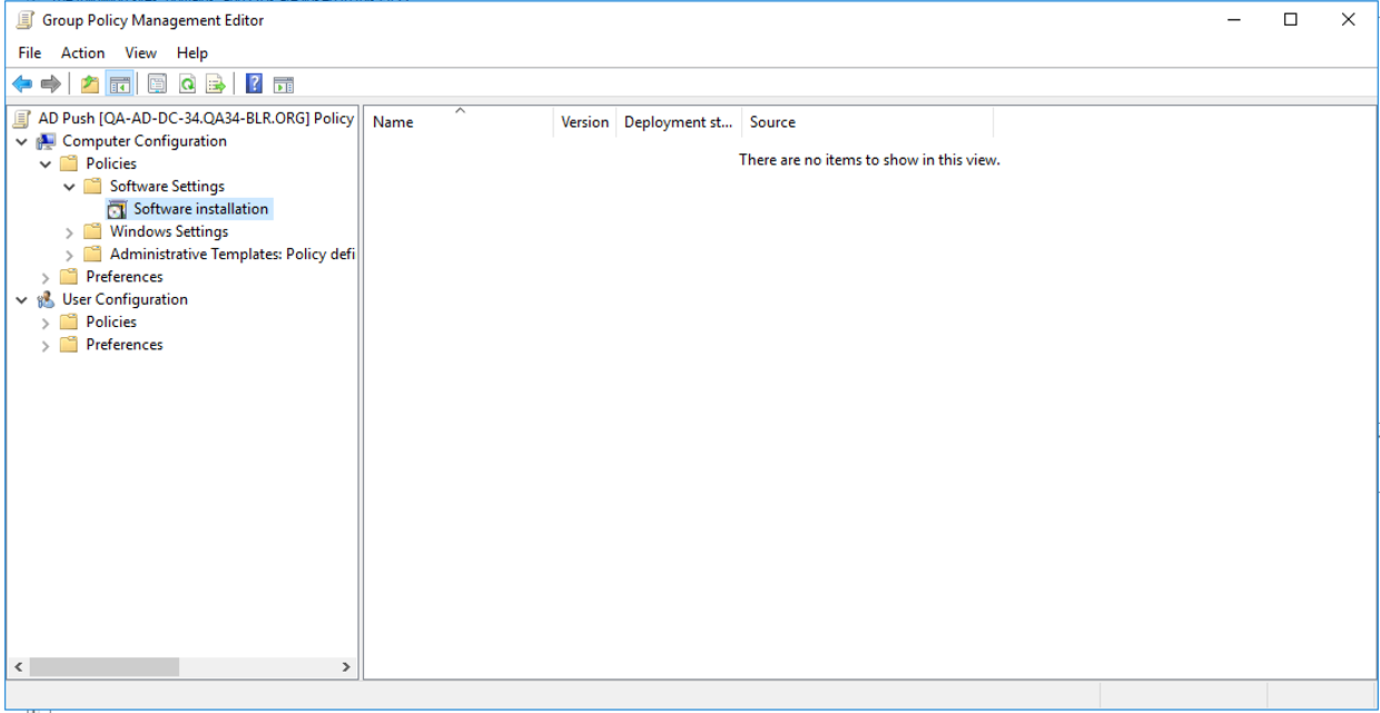 In the Group Policy Management Editor, return to the Software installation container that you created above.