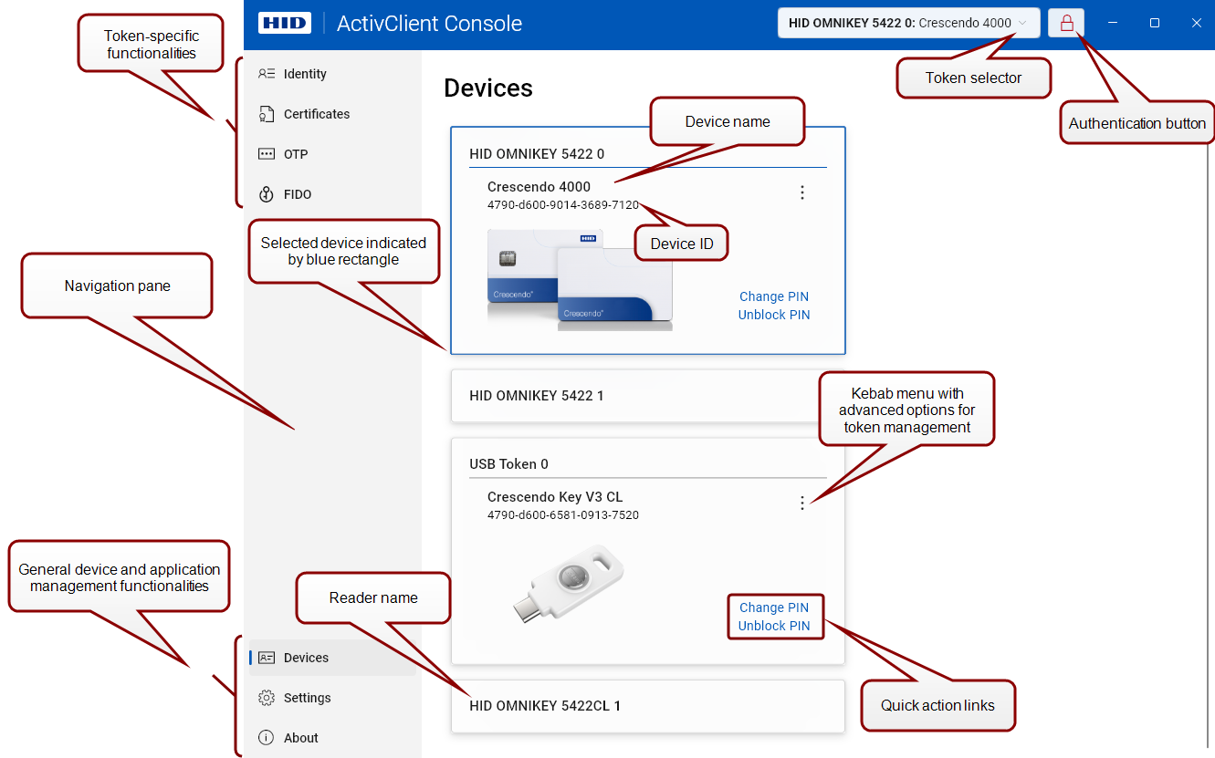 ActivClient Console provides an intuitive user interface, allowing you to quickly navigate between devices and various functionalities.