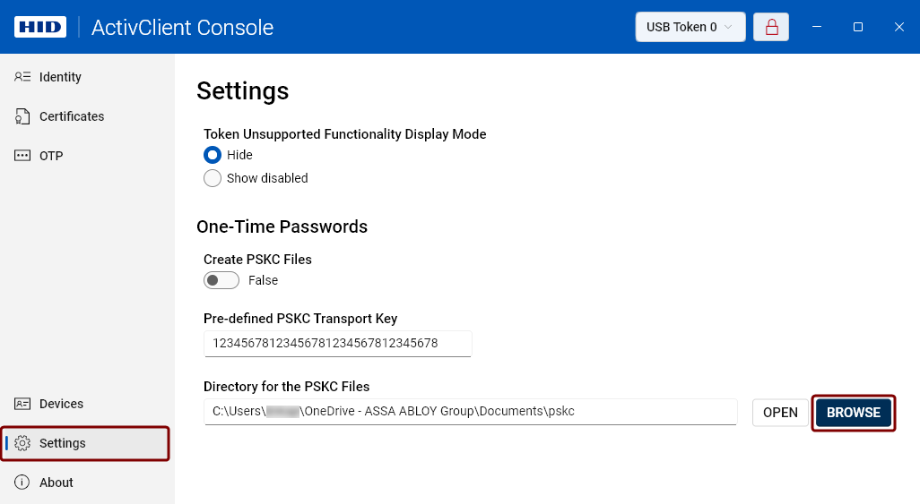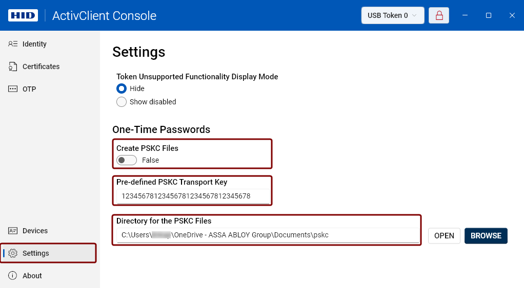 Access the directory where generated PSKC files Files used to securely transport and provision symmetric keys to cryptographic devices or software, following the Portable Symmetric Key Container (PSKC) format. will automatically be saved.
