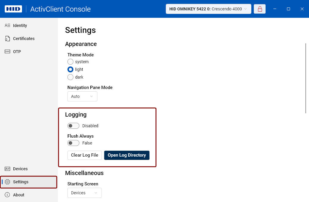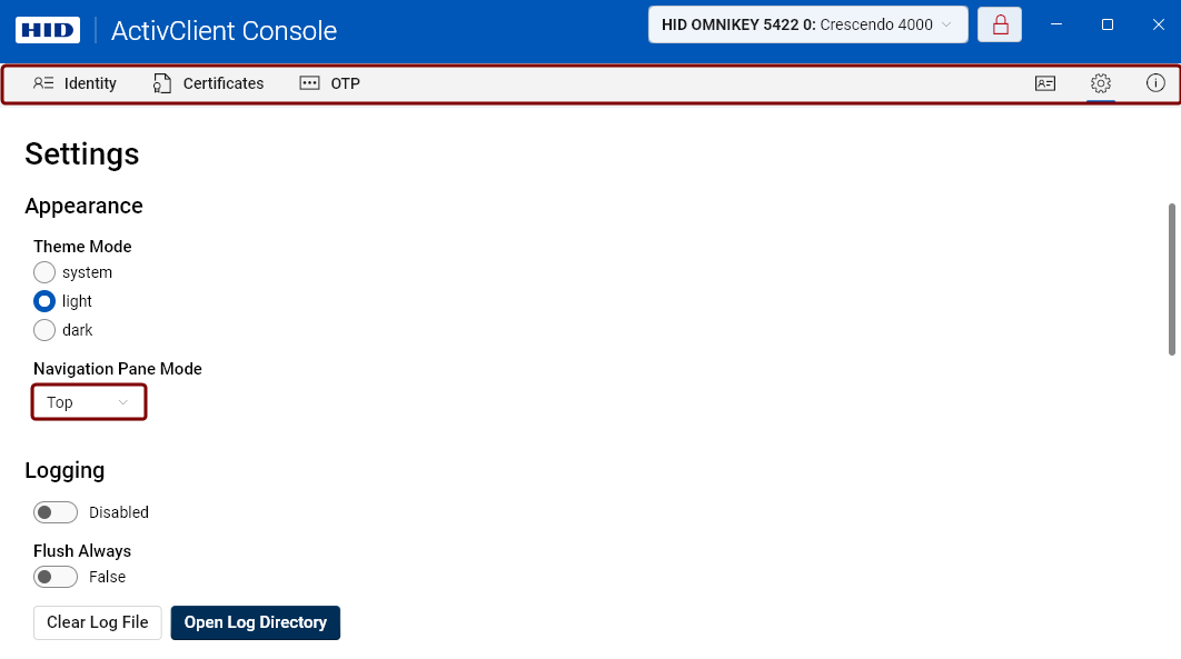 This section allows you to configure some basic settings of the ActivClient Console, including its appearance.