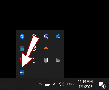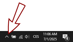 Click the arrow in the system tray to show hidden icons.