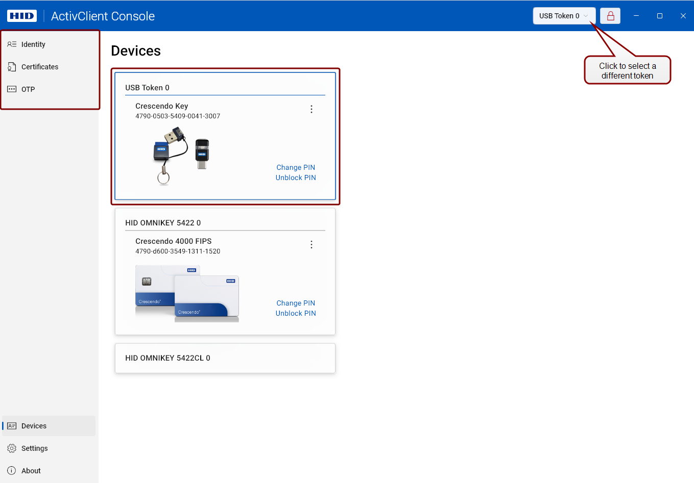 ActivClient Console > Devices view