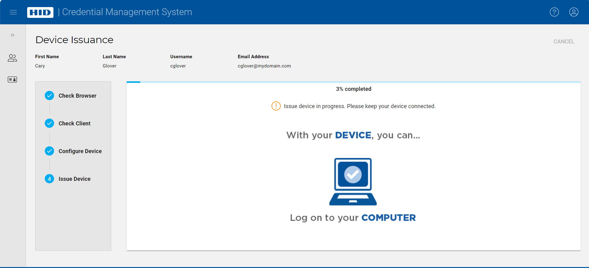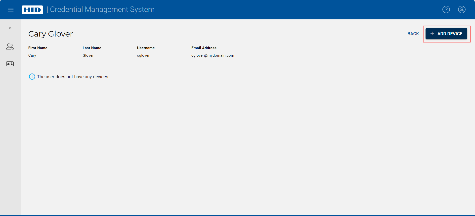 After the issuance, the User page is displayed again. The page now displays details about the newly-issued device:
