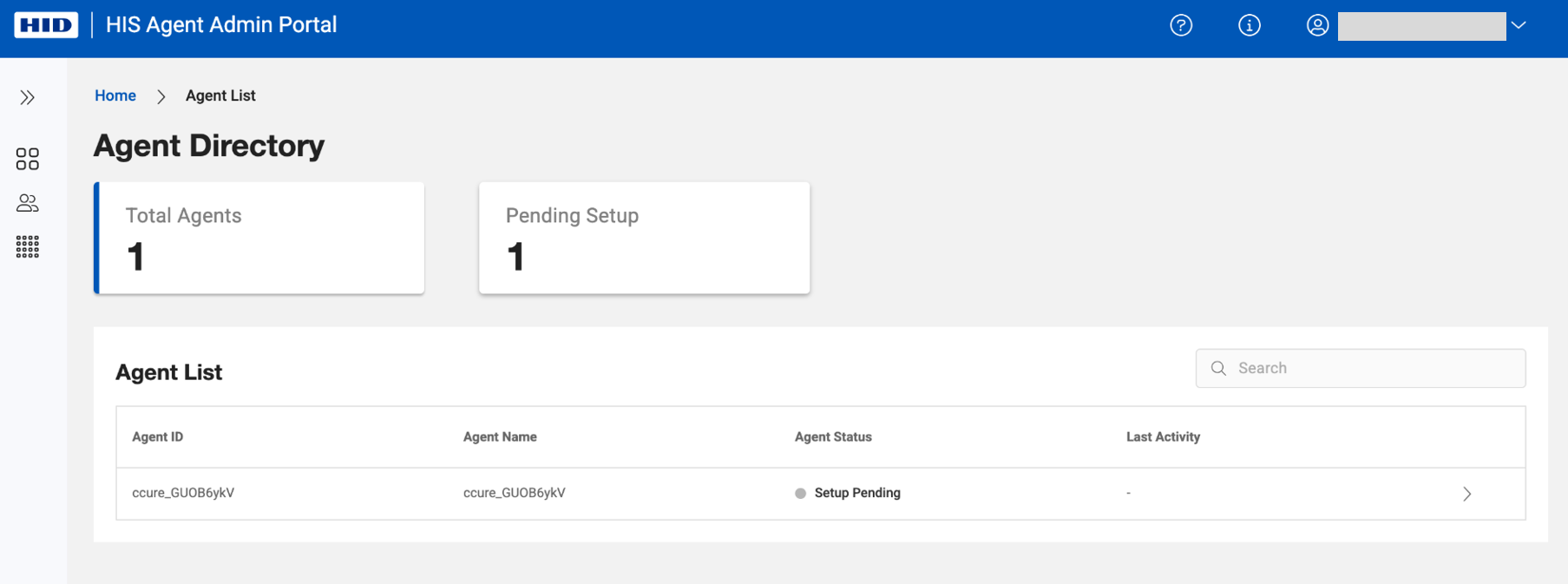 Home page shows the list of subscribed agent. Agents that are not yet configured are shown with status - 'Setup Pending'. Please select an agent to proceed.