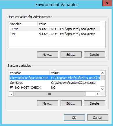 Make sure to have the ChrystokiConfigurationPath System variable set to your HSM Client path installed C:\Program Files\SafeNet\LunaClient in a Windows environment.