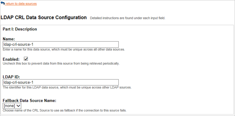 On the Data Sources page, click add a new LDAP CRL data source.